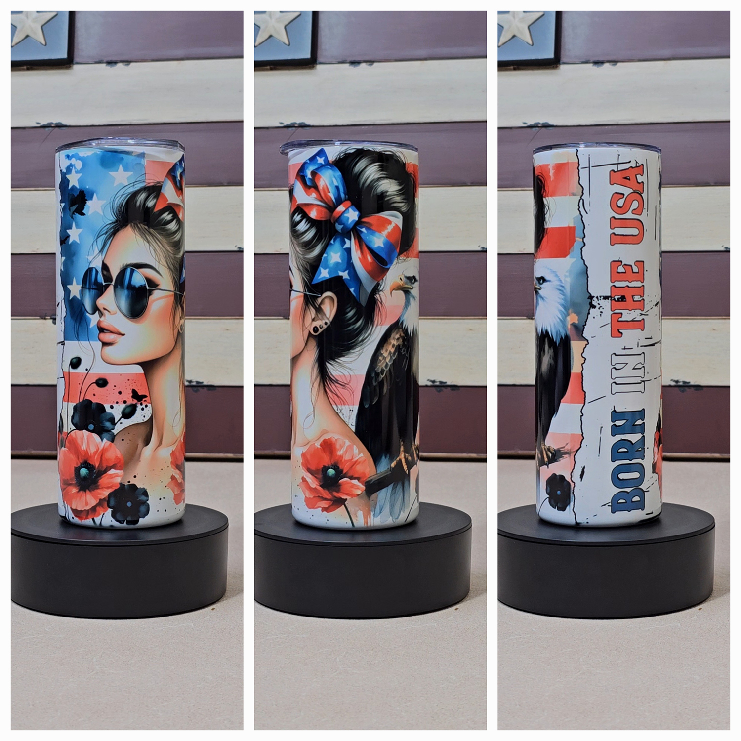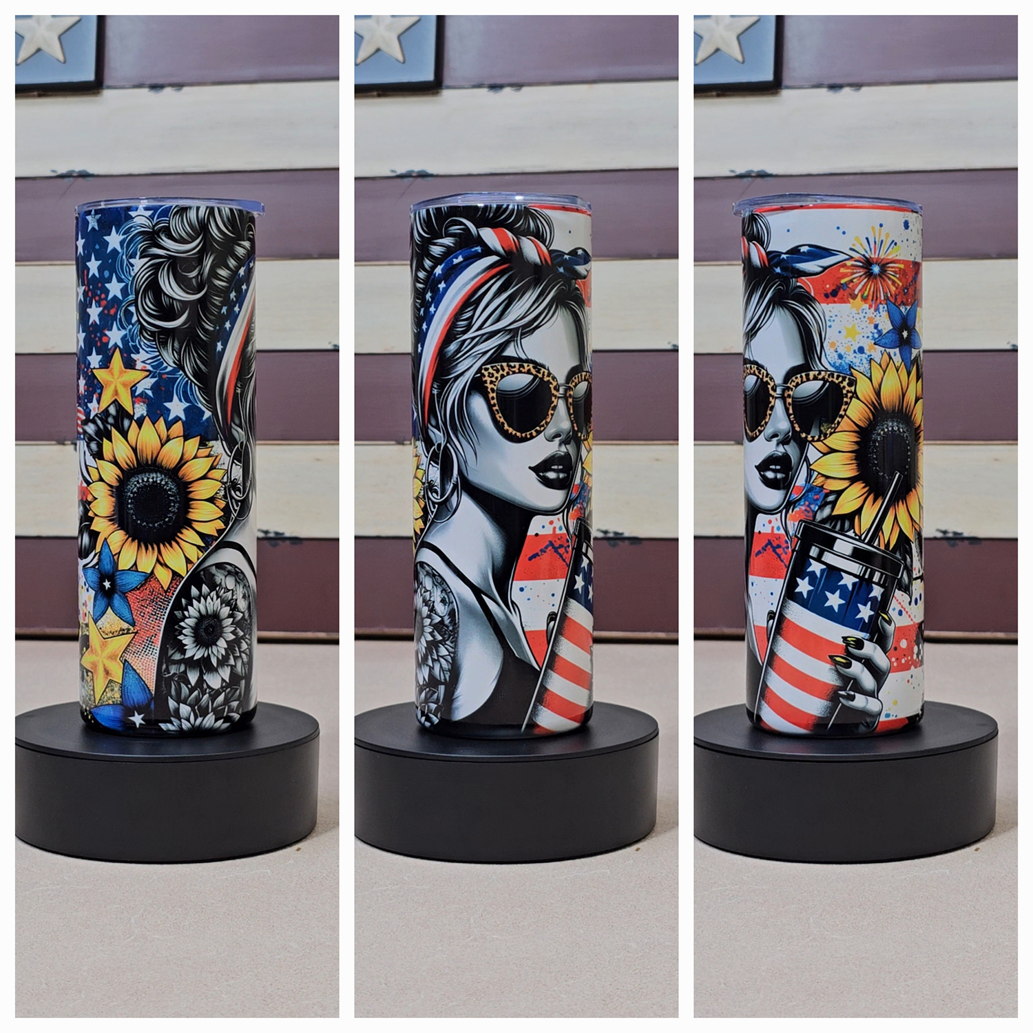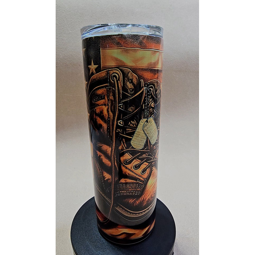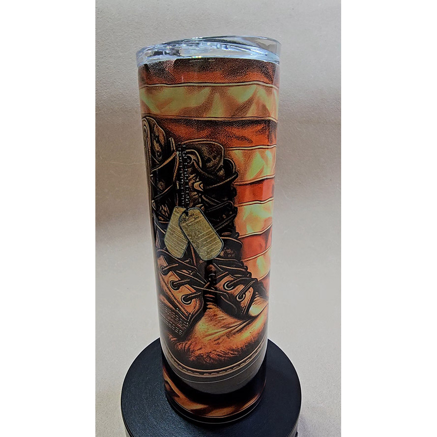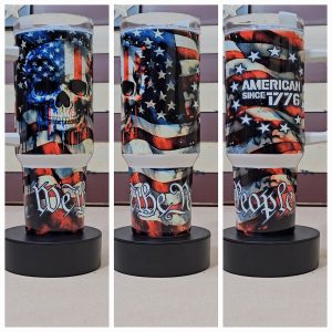 Moe personally picked these designs just for all of you Patriots. The tumblers are a size 20 ounce “skinny”. This means that it will fit in all your cup holders, unlike some of the larger sizes out there. These tumblers will keep your drinks hot or cold for hours, and they look awesome too. All tumblers come with a lid, straw, and care instructions. Moe also includes a business card so you can check out all of her amazing, custom goods. All tumblers are made to order so you know that Moe is making each tumbler just for you. Thank you Moe for supporting us at Gear For Patriots!